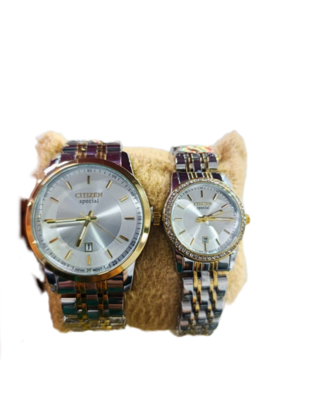 ساعت ست سیتیزن موتور ژاپن دورنگ نقره ای طلایی،صحفه زنانه دورنگین