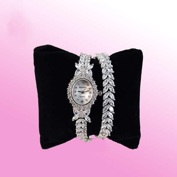 ساعت زنانه مجلسی نگین دار موتور ژاپن،بند بلند قابلیت دستبند و ساعت